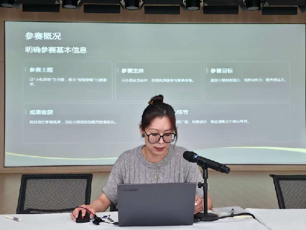 苏旭雯对2025年奉贤区校园人工智能嘉年华方案进行了解读,针对面向幼儿学段的智能创想设计展示活动逐一讲解了任务要求、比赛模式以及评分标准。此外还从主题构思、团队分工、技术选择与实现这三个方面,详细阐述了备赛策略,并通过两个创意案例生动展示了如何将简单材料与AI畅想结合,实现技术与创意融合的作品设计。