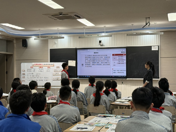 下午,调研小组在上海外国语大学附属奉贤实验中学听取了信息化分管领导邢群的工作汇报。学校以《大先生成长日记》的校级实践为抓手,开展信息化与教育教学相融合的研究与探索;在信息化技术的加持下,学校逐步形成了图书馆特色课程,创新阅读活动,激发学生读书热情。调研小组进入课堂观摩了余姿萱老师带来的七年级道德与法治《<生活在法治社会>单元思考与行动》,课堂充分利用三个助手平台开展教学,为教师全面、实时监督课堂活动有效性,精准把握学生学习情况提供有力支撑。随后,调研小组实地查看了教室、核心机房、图书馆等地,全面了解学校信息化设施设备使用、维护、信息安全等方面的内容。
